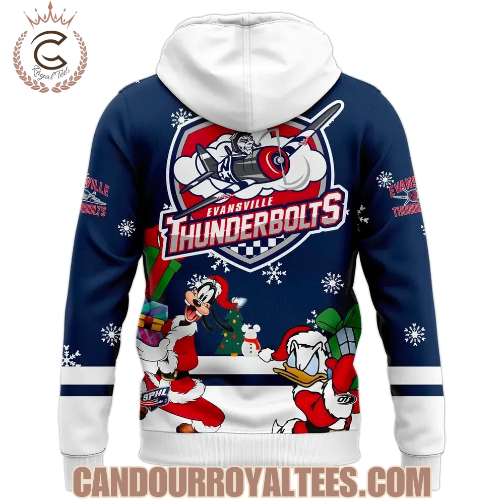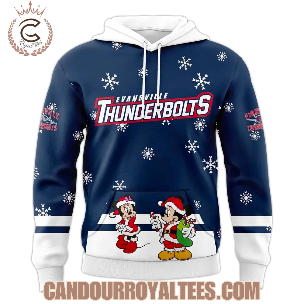 Evansville Thunderbolts x Mickey Merry Christmas 2025 Hoodie, Long Sleeve, Sweatshirt