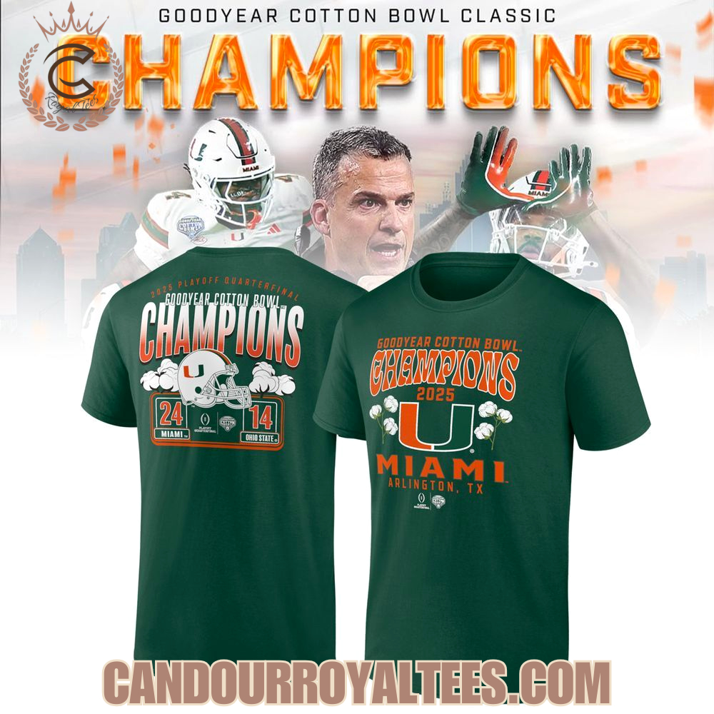 Miami Hurricanes College Football Playoff 2025 Cotton Bowl Champions T-Shirt, Hoodie, Long Sleeve, Sweatshirt
