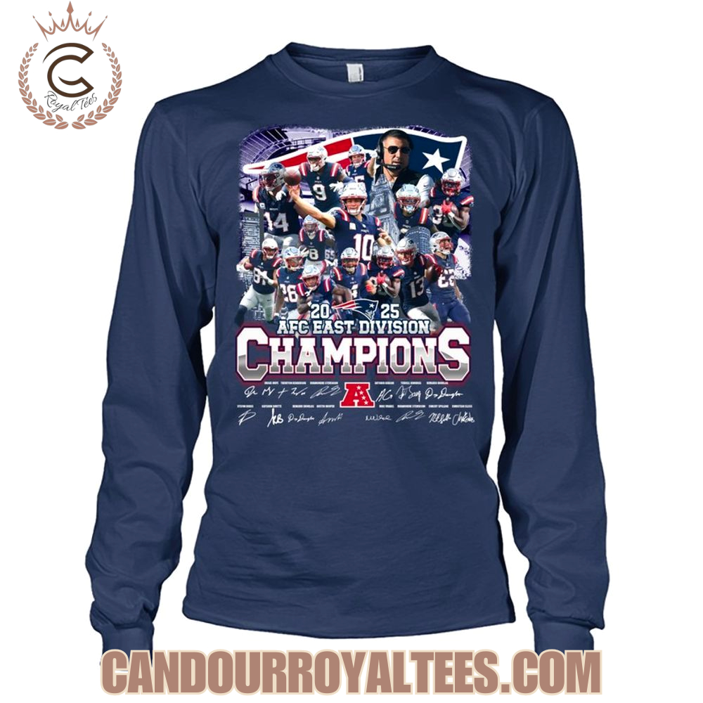 New England Patriots 2025 AFC East Division Champions T-Shirt, Long Sleeve Shirt, Sweatshirt, Hoodie, Ladies Shirt, Mug, Tank Top