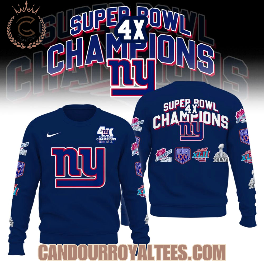 New York Giants 4x Super Bowl Champions Patch Throwback Hoodie, Long Sleeve, Sweatshirt