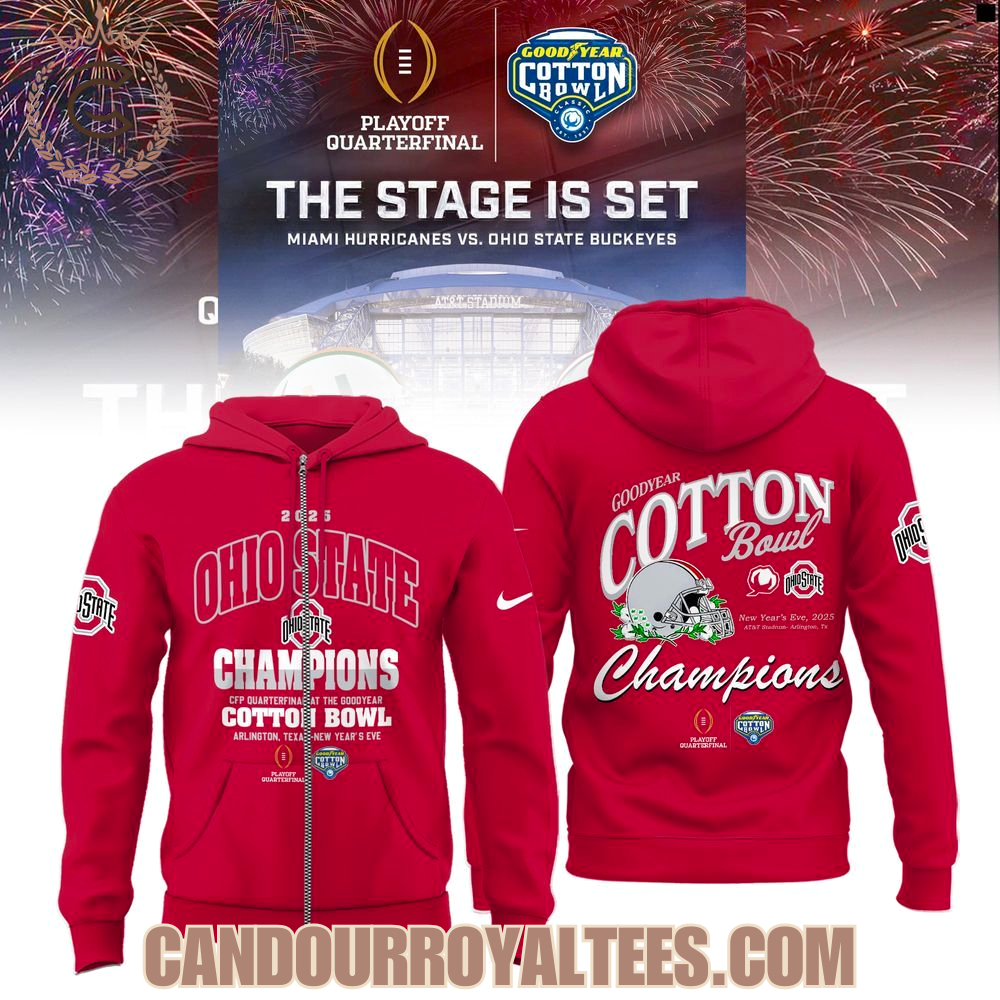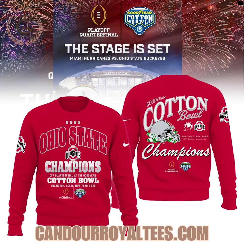 Ohio State Buckeyes 2025-26 Goodyear Cotton Bowl Champions Hoodie, Long Sleeve, Sweatshirt