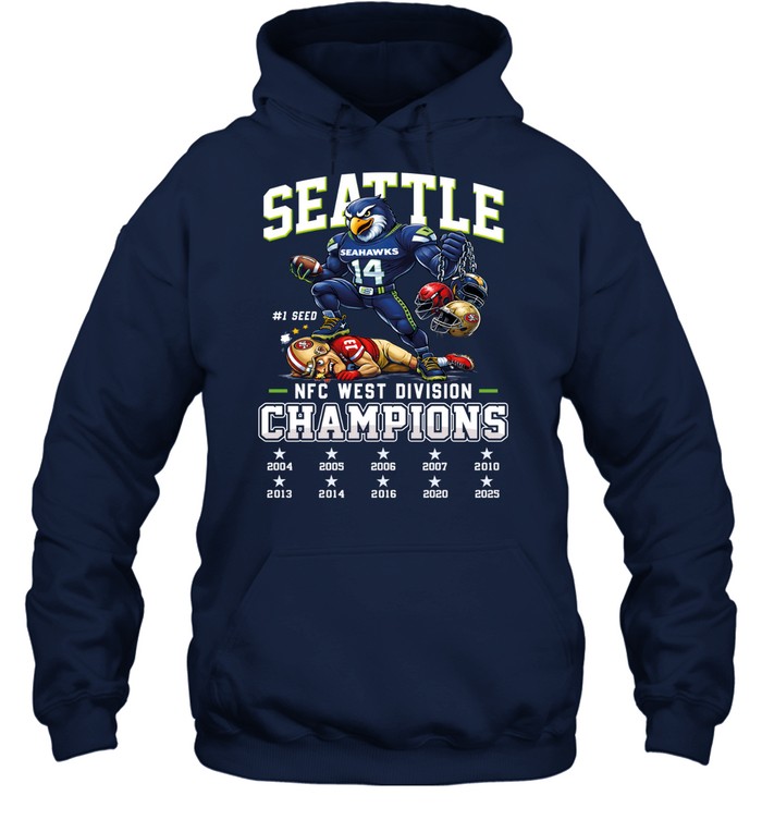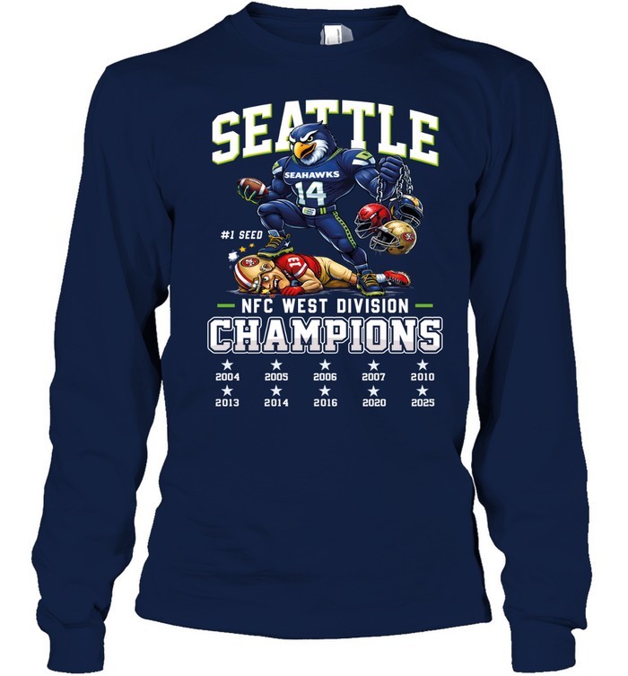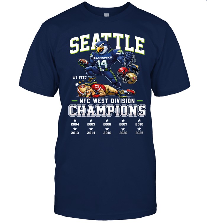 Seattle Seahawks NFC West Đivíion Champions 2025 T-Shirt, Long Sleeve Shirt, Sweatshirt, Hoodie, Ladies Shirt, Mug, Tank Top