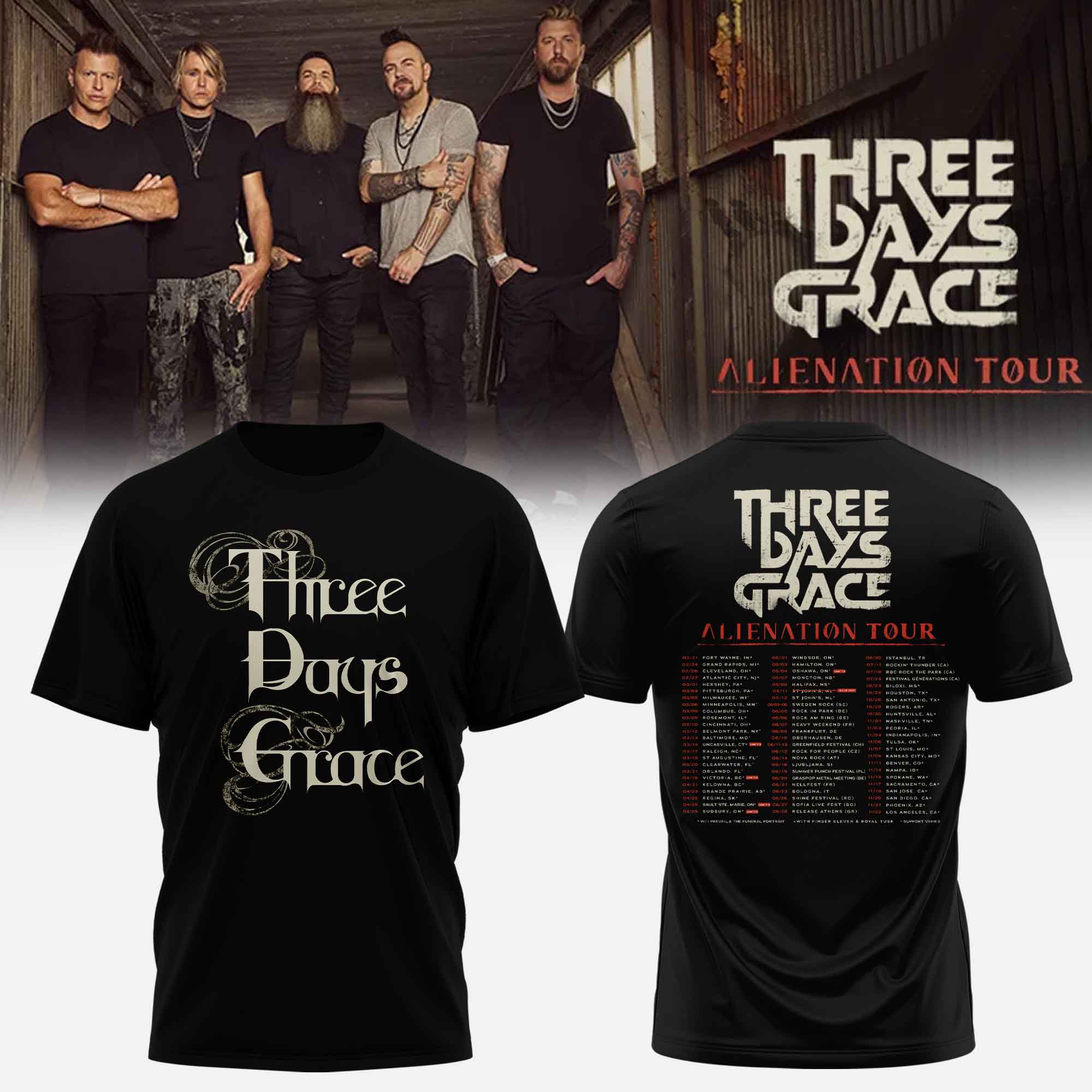 Three Days Grace – Alienation Tour T-Shirt, Long Sleeve, Sweatshirt