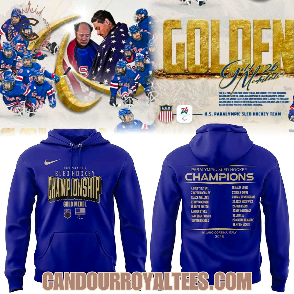 U.S Hockey Men’s US National Sled Hockey Nike Black 2026 Winter Olympics Gold Medal Champions Hoodie, Long Sleeve, Sweatshirt