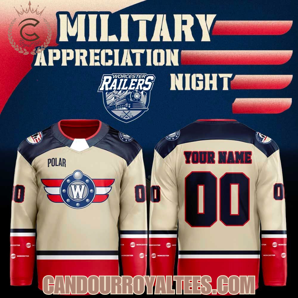 Premium quality Worcester Railers HC Military Appreciation Night 2026 Hockey Jersey. Perfect for any fan!